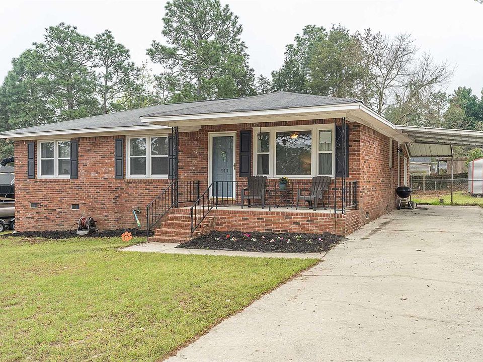 Adorable, renovated all brick Ranch in Wrenwood! Great starter home, first home, or forever home! PLUS NO HOA! At first glance you are greeted by your charming covered front porch, perfect for sipping your morning coffee or a refreshing glass of sweet tea. Step into your new living room with lots of natural light, gorgeous laminate flooring flows into the dining area, hallway, laundry & kitchen featuring gray tone cabinets that add great contrast to the crisp white-modern subway tile backsplash, ALL stainless steel appliances including the refrigerator and a rustic oversized barn door that would make Joanna Gaines proud! Enjoy loads of storage and space in your renovated laundry room addition (pun intended) wrapped with cabinets and counter space + sink to make laundry life a breeze. Spacious bedrooms with plenty of closet space, shared hall bath with tiled floors and a half bath in the master! Spacious back yard with deck for BBQing, fence enclosure and two storage sheds!!!!