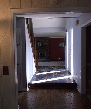 Best deal in Brigadoon! Excellent location for this unique, custom home with vaulted slate entry, huge kitchen/eating/family area with hardwood floors and sliders to deck/wooded back yard. Big family room with brick FPL. Excellent for entertaining--good/open flow and large rooms. Finished basement. Across from heavily wooded park district-owned area (no homes). Walking distance to community center, school, park district (pools), library, town, restaurants, shops and train. Regular sale (not foreclosure or short sale).