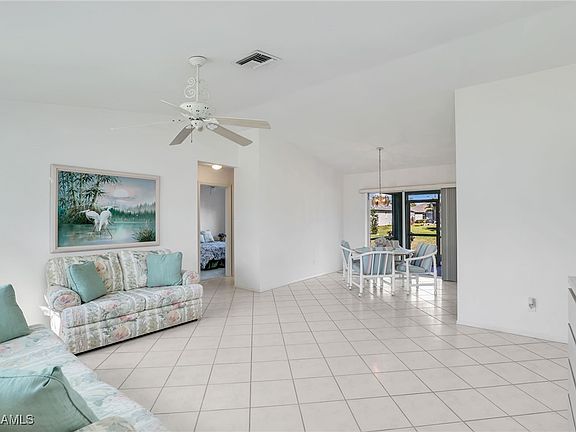 Welcome to this charming and well-maintained 3-bedroom, 2-bathroom home nestled in the heart of Cape Coral, Florida. With 1,201 square feet of thoughtfully designed living space, this home offers a warm and inviting atmosphere, perfect for those seeking comfort and functionality. Built in 1996, it has been lovingly cared for over the years, ensuring it remains in excellent condition. Step through the front door and into the bright and airy living area, where natural light pours in through the windows, creating a cheerful ambiance. The open and seamless flow between the living, dining, and kitchen areas makes daily living both practical and enjoyable. The living room provides a cozy space for relaxation, whether you're unwinding after a long day or gathering with friends and family. The adjacent kitchen is designed for both efficiency and style, offering ample cabinet storage, plenty of counter space, and a layout that makes meal preparation a breeze. Whether you're cooking