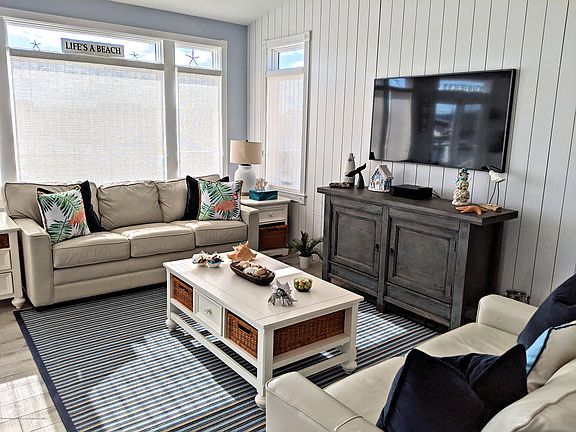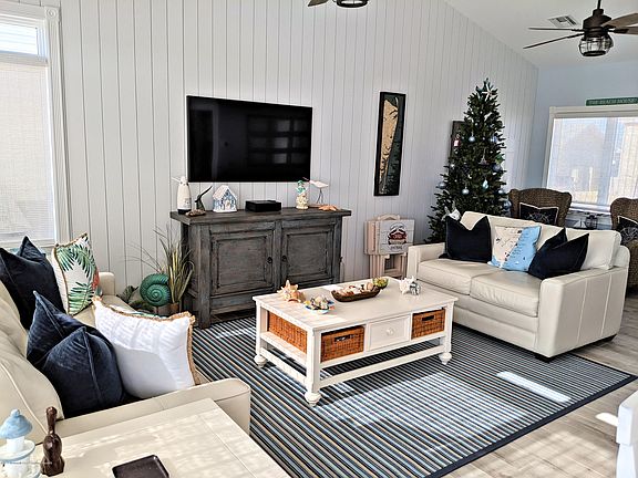 Watch the sunset over the bay from this beautiful 3-bedroom, 2-bath home that sits on one of the widest streets in Ocean Beach III. Home has 64 feet of new, vinyl bulkhead so you can fit one large or multiple boats in your backyard. Features include custom kitchen cabinets with quartz Silestone counters, hardwood and ceramic tile floors, washer/dryer, central air and heat, Andersen hurricane windows and large paver patio. Master bedroom suite has full bath with jacuzzi tub and custom tile. This house is on a raised foundation and flood insurance is only $770 per year. Leased land can be a great tax write-off.