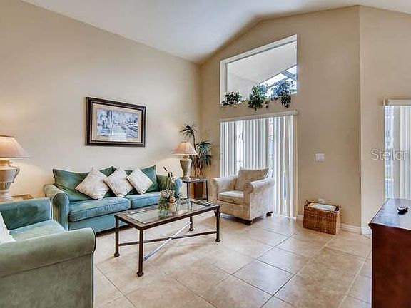 Take a look at this beautiful 4 bedroom, 3 bathroom private pool home. This property is on the popular and well maintained community of Solana in the heart of the vacation home area of Davenport. It has great access to shops, restaurants, theme parks and easy access to all major highways. The community is gated with recreational area and large community pool. The home itself has a spacious living area, formal dining area and eating space in the kitchen also. The master bedroom has walk-in shower, large tub and walk-in closet. There are 3 other spacious bedrooms with 2 bathrooms spaced well throughout the house. The sliding doors from the living room lead to a covered lanai. The private pool and spa area are screened in and allow for outdoor eating/lounging area. The home is currently used as a short term rental and future bookings that are in place can be transferred to the new owner if desired. This home comes fully furnished and is turn key ready for a residential or vacation purchase.