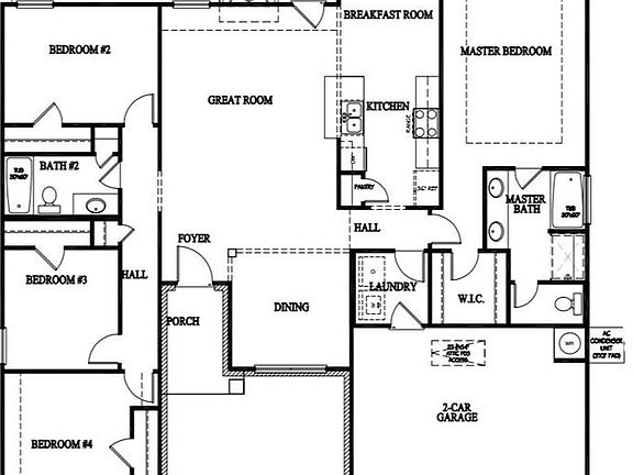 This gorgeous split-bedroom plan features 4 bedrooms and 2 baths. Welcomed into the home through a foyer, the great room awaits! Appointed with an electric fireplace, this cozy space is the perfect family retreat. The galley style kitchen features granite counter tops, painted kitchen cabinets, stainless steel appliances and attractive pendant lighting at the kitchen bar. The master suite includes a walk-in closet, and private bath with separate shower, garden tub & toilet room. The three secondary bedrooms share a hall bath.