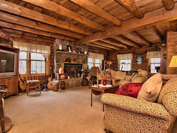 Over three private acres with beautiful, rustic log home. 3 bedrooms/2 baths. Covered front porch for relaxing or just enjoying peace and serenity. Location is quite secluded, yet 5 minutes to major roads and amenities. Full, unfinished basement with heat.