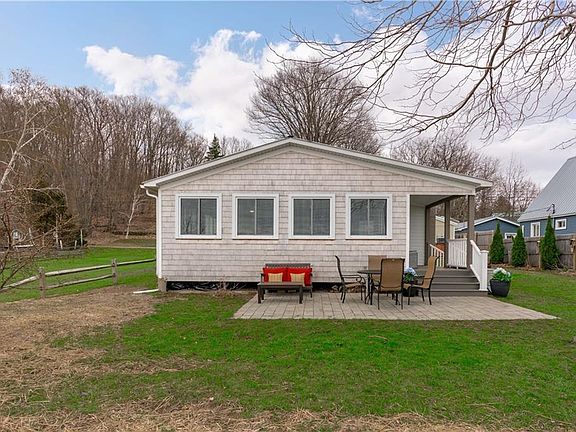 Fabulous YEAR ROUND ranch situated directly on the shore of North Sandy Pond! This home has been upgraded from top to bottom. The show stopping kitchen features all stainless steel appliances, huge stainless farmhouse sink, sleek tile backsplash, and a large island for ample counter space! Kitchen leads into a living/dining room combo that is graced with a tongue and groove vaulted ceiling and a full wall of windows to watch the sunset over the pond. The bathroom is also fully upgraded with a mutli-jet shower. All 3 bedrooms are great sized with plenty of closet space. Private boat launch right on the shoreline and roll out dock. This location is second to none and provides some of the best fishing, swimming, and boating in the whole area! The property has also has NOT had any flooding!