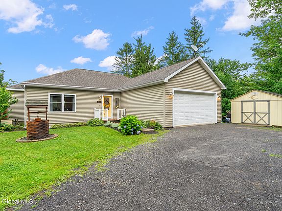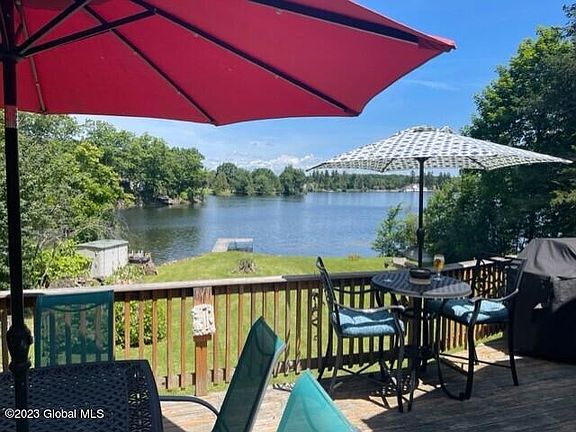 Rare Find! Mariaville Lake Year Round Home directly on the lakeside with awesome lake views from every room! 100' of shoreline with a dock! Quiet setting of 0.46 acre level land. Open airy floor plan =gorgeous kitchen, family room, dining area and living room. Atrium doors in dining area to deck, 3 bedrooms-primary suite has amazing lake views, brand new bath w/walk in shower and closet. Home has 3 baths, recently renovated-many new improvements including new kitchen, flooring, baths, radiant floor heating, high efficiency boiler/hot water tank & standby generator Entry area through front porch or garage. Full walk out basement with 1585 Sqft partially finished extra space. 2 car garage, 2 sheds. The furniture is negotiable. This home is in excellent condition! Located on dead end road!