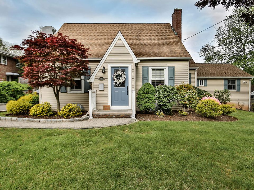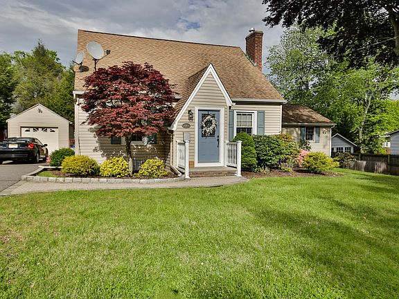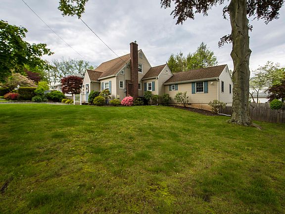 Expanded Cape approximately 2044 sq. ft. on lovely 100x100 lot. The home is in pristine condition, freshly painted interior and many updates. Living room with wood burning fireplace. Updated modern eat-in-kitchen with hardwood floors, granite counters and ceramic tile backsplash. Family room with skylight and sliding glass doors to spacious deck. Master Bedroom with hardwood floor and updated master bath with granite vanity and stall shower. Two additional bedrooms and full bath complete the first floor. The Second floor has a large bedroom with a separate sitting/office room and a full bath with linen closet and storage areas, great for extended family. Close to bus transportation and elementary school on beautiful tree lined street.
