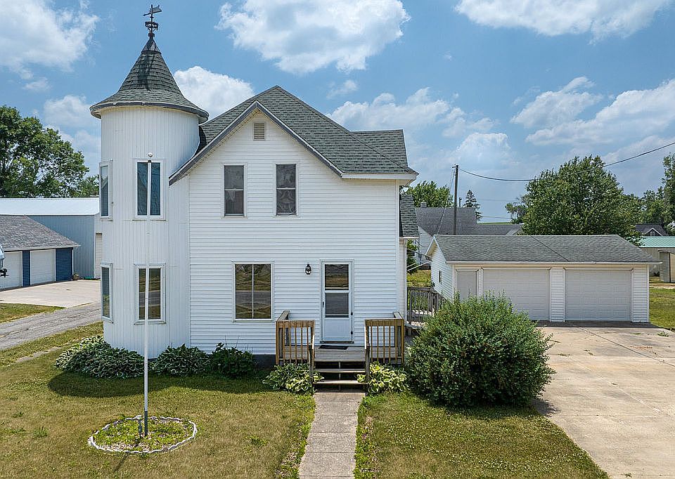 This move-in ready 2-story home is located in a family-friendly community on a quiet street, close to Hwy 1. Martelle is 20 minutes from Cedar Rapids and 40 minutes from Iowa City. The main level has new carpet and luxury vinyl plank floors. The main level also includes a bedroom, full bath and laundry. The kitchen features vinyl plank floors, laminate counters and new stainless steel appliances. Appliances stay with the home. The primary bedroom is located on the main level and features new carpet. The upper level includes 2 bedrooms, full bath, and an additional non-conforming bedroom. The unique Victorian-style home includes a majestic turret room on the main floor and the upper level providing curved windows and a wider view of the outdoors and a perfect place to create a reading nook or quiet space. Outside you will find a large 2-car unattached garage plus a second unattached single-car garage. There is a large lot with two sides of the property adjacent to alleys. Property Improvements: - New Roof - 2022 - New Appliances - 2023 - New Carpet/Flooring - 2023 - New Paint - 2022
