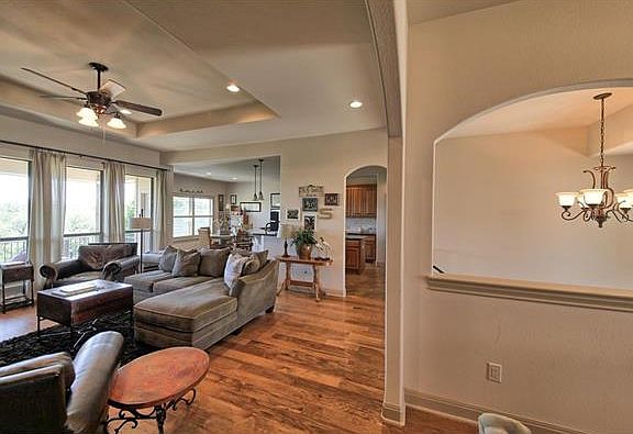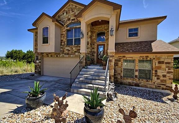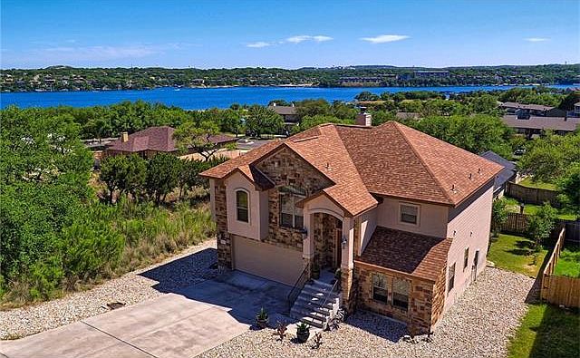 Solidly built home by prestigious Vista Verde. Upgrades everywhere- from the hardwood floors to the curved arched doorways- many touches make this home unique. Terraced ceilings add height and the rotunda in the dining room is exceptional. Fantastic Lake Travis views from the expansive back patio and deck. This home has a formal dining, breakfast nook and downstairs game room. Garage big enough for boat parking and golf cart with RV space on the side!!! Come to North Lake Travis and start living well!
