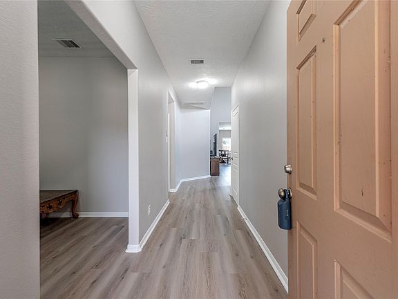 Welcome to this inviting two-story home in the Painted Meadows community, offering 4 bedrooms, 2.5 baths, plus a private study and a versatile upstairs game room. The main living space is filled with natural light, with high ceilings and an open layout that connects the kitchen, dining, and living areas for easy gatherings. The primary suite is tucked away downstairs for added privacy, while the secondary bedrooms and game room upstairs provide plenty of space for family or guests. Recent updates include new laminate flooring in the downstairs living areas, fresh paint throughout, and new carpet in the primary suite and upstairs rooms. With a two-car garage, generous driveway parking, and a location just minutes from I-45, this home offers both comfort and convenience with quick access to Houston, Galveston, and everyday amenities.