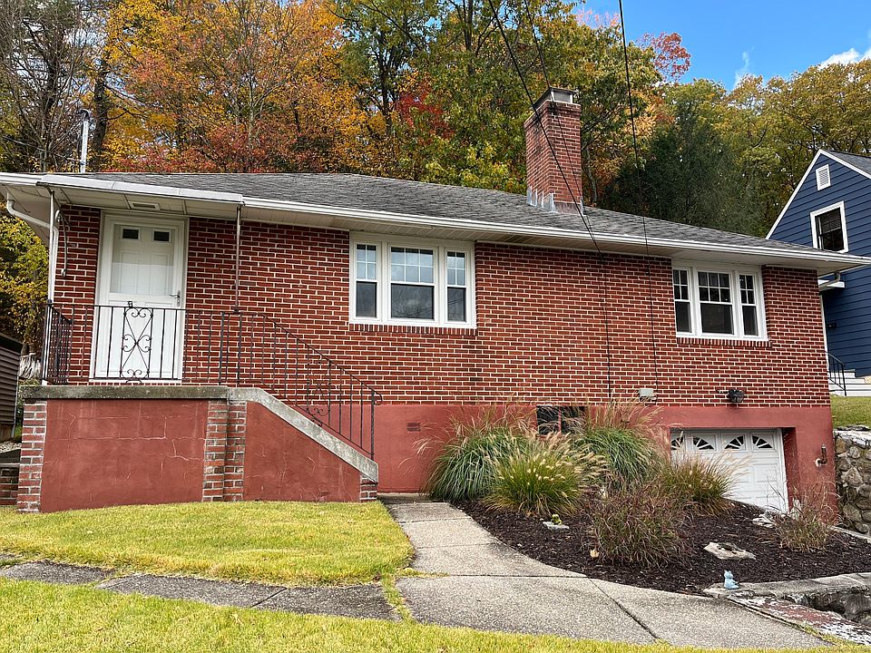 Enjoy city views and a deep, rear yard that has extra wooded space and a delightful carefree house. Walk right in and take over! This is a well loved and well kept home with hardwood flooring and large living room with a beautiful brick fireplace. The kitchen is conveniently appointed and well kept with extra closet space. Replacement windows are already done and there is city sewer and water. There is a large family/den in the basement with an extra closet and laundry room. Neat and clean and waiting for your final touches.