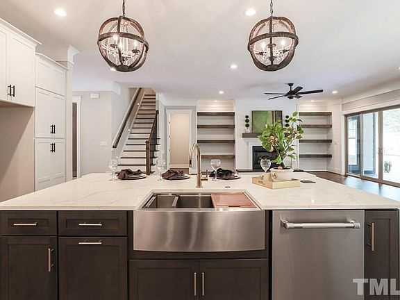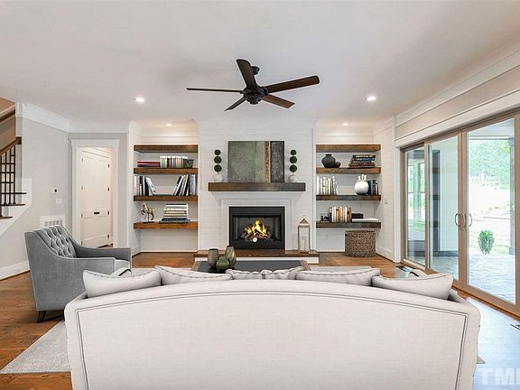 LOTS OF EXTRAS! Private Wooded Lot! HWDS Thru Main Lvng! Kit: Quartz, Dsgnr Backsplash, SS Appls, FarmSink, Cbnts w/Accent Display Glass, Butlers Pantry w/WineRack! Master: HWDs, StainedBeam Accnt Ceiling! MBath: ZeroEntry Shower w/Body Sprays & FramelessGlass, Freestnding SoakingTub, Upgraded Ctops & Lighting! FamRm: Floating Stained Shlving, Slider Door to Cvrd Porch w/Vaulted Ceiling & Fireplace! Bonus Room w/Accnt Barn Door & Cstm Blt in Shlelving!
