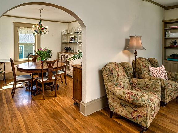 Intown Petoskey charmer. Front porch sitting with peaks of the Little Traverse Bay. Walk to town for dinner, coffee or a new book. Life is good in this home. Walking in the front door you will be greeted by wood floors, coved moldings, built in bookcases and sun streaming through the windows. The living room is large enough for a crowd and has a charming tiled fireplace to gather around. The dining room looks out over the back yard and is open to the office and kitchen. The office has been used as an art studio, and the natural light pours in from all sides. The kitchen has cork floors, a cozy bump out where a kitchen table could easily sit, and custom concrete countertops. A back entrance\mudroom and half bath are accessed from the kitchen. Upstairs you will find three bedrooms and a charming full bath complete with tile and bead board. The master bedroom is large and has direct access to the bathroom (which can also be accessed from the hallway). Again, the wood floors are throughout the entire second floor and both front facing bedrooms have peeks of the bay. This home has a beautiful yard with perennial beds, a backyard pergola for relaxing and a charming gardening shed..