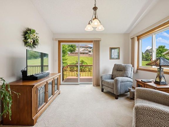 Welcome to this beautiful 4-bedroom, 3-bathroom townhouse located in desirable Sundance Ridge Development. This spacious home boasts an open floor plan, perfect for entertaining guests. The large kitchen center island is perfect for preparing meals and the main floor laundry adds convenience to your daily routine. Enjoy the cozy 4-season sunroom or relax in the living room with a gas fireplace. The primary bedroom features an en-suite bathroom, which is handicap accessible, (doors, roll-in shower, grab bars) providing you with a private retreat. True one-level living! The finished lower level offers a huge family room, providing ample space for entertaining guests. The lower level also features two additional bedrooms and another bathroom, making it perfect for accommodating guests or family members. The deck is perfect for enjoying the outdoors and provides a great space for outdoor gatherings. Don't miss out on the opportunity to make this house your home!