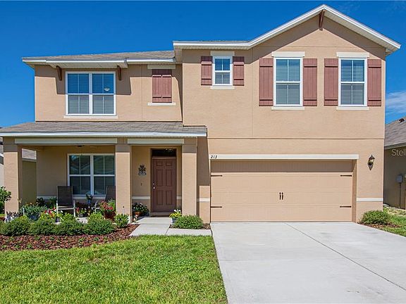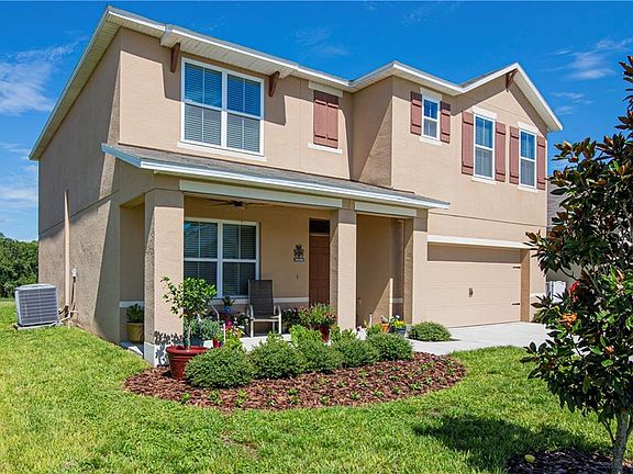 Enjoy wooded views and beautiful Florida sunsets right from your backyard in this like new 5 bedroom, 3 bath home. Built in 2018 and with over 2600 sqft living area this home could be ideal for your multi-generational or growing family. There's 1 bedroom and 1 full bath downstairs with 4 additional bedrooms and 2 full baths upstairs, along with an upstairs loft for gathering together and the convenience of an upstairs laundry room complete with new cabinets and a counter for folding. Downstairs features an open family room/kitchen concept and sliders just beyond the dining room to your backyard where you'll enjoy many summer cookouts and harvesting sweet peaches from your very own peach tree. There's also a large kitchen with a breakfast bar, closet pantry and ample cabinet space. Why wait to build when you can own this "like new" beautiful home with upgrades like lighting fixtures, ceiling fans, Samsung appliances and new kitchen sink? You'll also enjoy neighborhood amenities including a beautiful pool and cabana, tot lot and park. Convenient access to Hwy 27, I-4, shopping, dining, medical offices, hospitals and the Orlando theme parks.