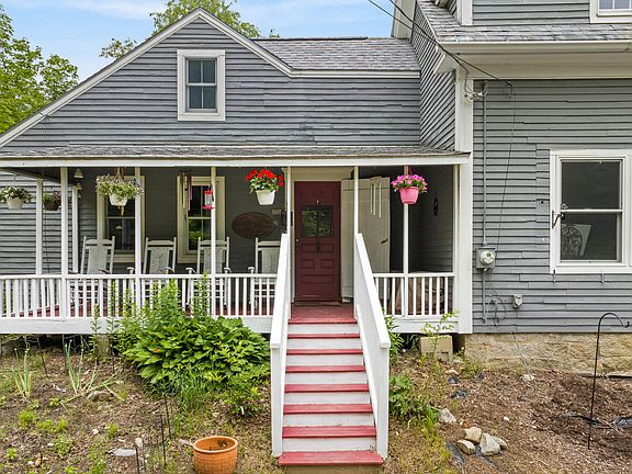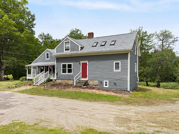 beautiful pine floors throughout most of the home with a large entry, dining room with fireplace, living room and a wonderfully renovated Williamsburg style kitchen with with slate countertops, soapstone sink and an adjacent informal dining/family room that offers the opportunity for a wood stove. A large laundry and back mudroom, back deck off the family room and a traditional farmers porch complete the package. Located on a quiet dead end road, this homestead offers a peaceful and healthy lifestyle with a 1 acre MOFGA certified garden, a beautiful 50'x36' 8 stall barn with