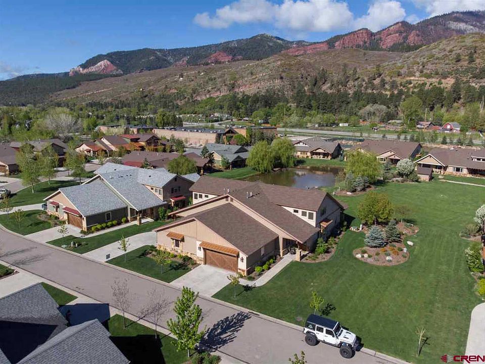 This beautiful Trimble Crossing townhome sits on one of the best lots in the whole subdivision. A Hermosa Plus Model with the Craftsman Package, this wonderful floor plan has ample room for all and a 3rd guest suite in the upper level. Enjoy taking in the red cliff views from the back porch that flows into open space made up of multiple ponds and lush green landscaping. Located in the gorgeous Animas valley you are perfectly located and walking distance to the Animas River, 15 min. to skiing at Purgatory Resort and 10 minutes to town. This Animas Valley location has the added benefit of the shops at Trimble Crossing with a gourmet market, wine & spirits and hardware store that are just a short walk or golf cart ride from your townhome. Stunning exteriors include natural stone, 30-year shingles and low-E windows, styled with a combination of stucco and trim color for a modern mountain look. There are also heated cables installed to prevent snow buildup on the roof and satellite during the winter months. This Hermosa Plus unit is a gorgeous two level home with 3 bedrooms and 3.5 bathrooms with dual zone Central A/C. The main level master suite flows directly to the oversized bathroom with double sinks, soaker tub, glass shower, toilet closet, plus a huge walk in closet. All of this is matched by a second master on the upper level, also with an ample walk in closet, double vanity, toilet closet and shower. A smaller third bedroom/office on the main level has its own private bath as well. A superbly outfitted kitchen includes stainless appliances from GE, high end fixtures and features a prep island, gas range with oven, granite slab counters and large pantry. The kitchen, dining and living spaces combine to create a truly great room. The living room includes a gas fireplace with stone surround and large view windows with access to the back porch and lush open spaces. The room is prewired for surround sound and has space set aside for a large TV. A convenient powder room, laundry room and large garage complete this luxury townhome.