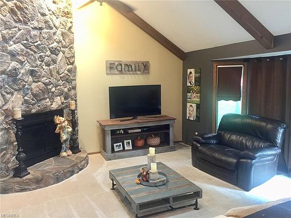 Great Location! This home is located in the quiet Surrey Hill subdivision and just minutes from shopping and I-77. This adorable 3 bedroom, 2.5 bath home is tucked away at the end of a cul de sac. It has a good sized lot with an amazing new concrete patio. This home also offers a 1st-floor master bedroom and laundry! You will fall in love with its unique 2 story stone fireplace and vaulted ceilings. This home has lots of nice updates as well. The kitchen has been updated with custom painted cabinets, a solid Walnut butcher block countertop, and a deep stainless steel sink with a new spray nozzle. The first floor half bath has a solid granite countertop. Newer ceiling fans and lighting throughout the house. The basement is finished with a good sized recreation room and office area, with a custom pallet wall. The downstairs office could also be a 4th bedroom. The garage is also customized with a pallet accent wall that gives it a rustic charm. Donât let this one pass you by. Call or text for private showing.The Homes Comes with a 1 year Home Warranty provided by Seller.