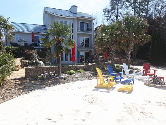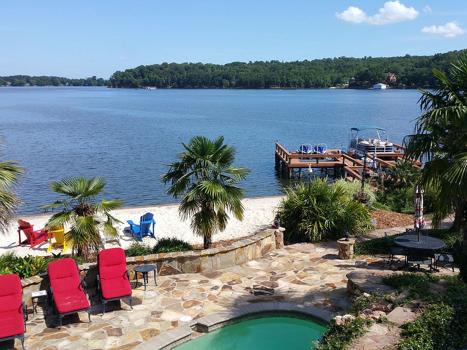European contemporary style 3 BR 3.5 BA home on one of Lake Wylie's finest waterfront sites. Fantastic main channel views with private sandy beach, inground rock grotto pool, firepit and huge deep water dock with multiple slips. Stone staircase into lake wading area perfect for paddle board launch. Home features an open floor plan, gourmet kitchen with Viking appliances, granite counters and custom cabinetry. Master on main and wood/marble floors throughout. Finished basement has wet bar, hot tub, sauna and media room. Plenty of parking w/ 2 car attached and 3 car detached garages, both with AC and heat. This is a personal resort ready for entertaining or just getting away. Make it yours!
