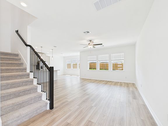 Thrive at Stonewall Ranch in Liberty Hill,This 2025 construction two-story home welcomes you with an open and connected layout, where the kitchen, dining, and great room flow seamlessly together, all with views of the covered porch and backyard. The kitchen is designed for both style and function, featuring a spacious island, stainless steel appliances, and a walk-in pantry. A powder bath and extra under-stair storage add convenience to the first floor. Upstairs, the primary suite offers a relaxing retreat with a roomy walk-in closet, dual vanities, enclosed water closet, linen storage, and a large shower. TX! Right off 183 Toll Road, enjoy access to Austin's vibrant scene and nearby Bar W and 1890 Ranch. Plus, you're less than 60 miles from Killeen and Ft. Hood. Amenities , include a sparkling pool, splash pad, playscape and basketball court. You're zoned for top-rated Liberty Hill ISD schools, including an elementary school in the community! Open-concept 2-story floor plan with quartz countertops, stainless-steel appliances, pendant lights, upgraded flooring and pull-out drawers for added convenience.