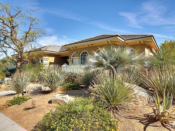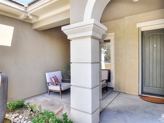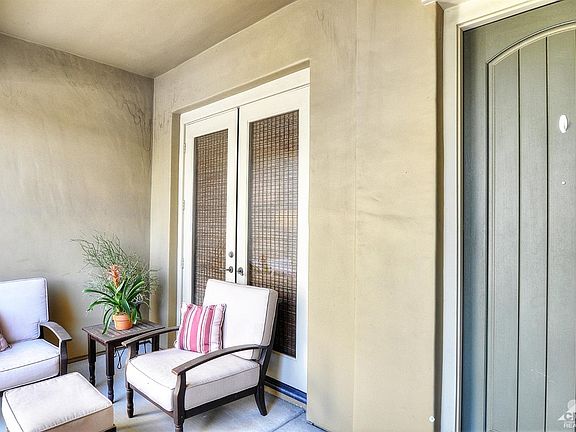 Located in wonderful Campanile, a gated community minutes from Palm Springs & adjacent to Rancho Mirage, this home is nothing less than exquisite. Designed with the direction of architect owner, the home was upgraded with wonderful choices of colors & materials. The open great room floor plan with beamed ceiling & built-ins looks out over private landscaped pool yard with raised Trex deck and pebble tec pool with tanning shelf and spill-over spa. The ensuite spacious master has large lovely bath with deep soaking tub, separate shower with seat, double sink vanity & huge walk in closet with two door entry. Wonderful plantation shutters and custom coverings found throughout much of the home. Lovely arches columns & French doors also accent the interior. The cooks kitchen was upgraded with extended slab granite island and boasts clear glass door cabinetry, stainless appliances, 5 burner stove, pot filler, double ovens, plus walk-in pantry. Nest thermostats. Offered furnished/unfurnished.