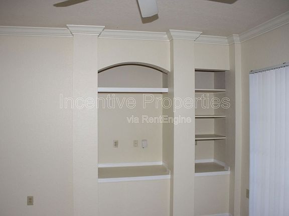 Spacious 1 bedroom, 1 bathroom condo located in the Notting Hill community of Lake Mary. This 2nd-floor unit features a private 1st-floor entry for added convenience. Interior highlights include a living room with built-in shelves and decorative columns, a large primary bedroom with ample closet space, and an in-unit laundry room. The kitchen offers plenty of cabinet space and a breakfast bar that opens to the living area.