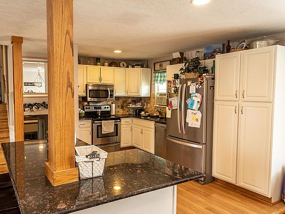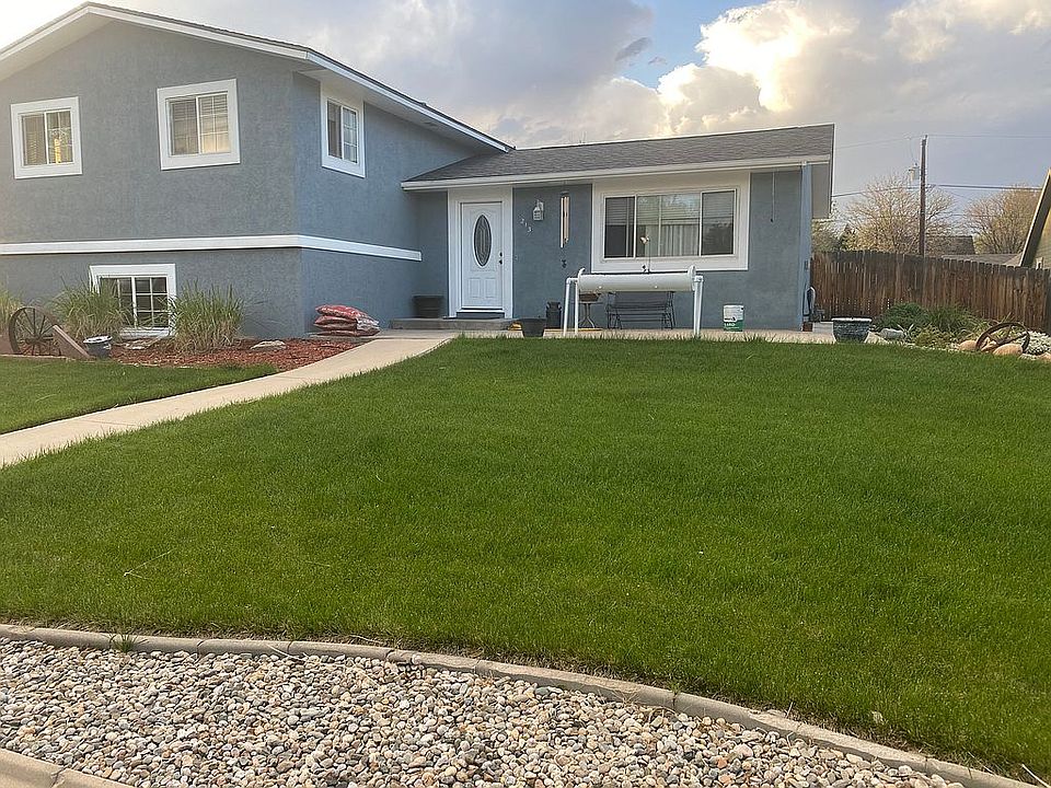 Feels like COUNTRY LIVING in the middle of Loveland! Large home with 4 bedrooms, 4 baths on a large 12,000 SF lot with NO HOA, RV Parking and DETACHED GARAGE! Updated Kitchen with white cabinets, granite countertops and stainless steel appliances! Hardwood flooring and no carpet keeps this home nice and clean. 2 living spaces with wood burning fireplace in the lower level. Owners suite in the lower level with private bath, upstairs is 3 additional bedrooms and one of them is a secondary master with private bath. NEW class 5 hail resistant roof, New paint inside and out, newer sprinklers and sod in the front yard. 2 sheds and chickens can stay. If you are looking for some space to spread out, you will want to see this home!