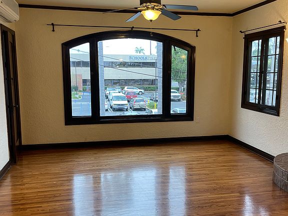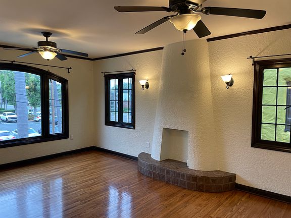 Beautiful historic Spanish style apartment. Floral Park area of Santa Ana located at 215.5 W Buffalo Ave Santa Ana. Gorgeous living room with tons of natural light, hearth and mantel detail, and closet for extra storage, ceiling fans, new mini split system for heat and AC. Lovely kitchen with plenty of counter space, cabinetry for storage storage, gas range, and breakfast nook. Bedroom features high ceilings, original steel windows, ceiling fan, and closet with window. The apartment has hardwood floors throughout bedroom and living room and black and white checked floors in kitchen and dining area. There is a front and rear entrance to the unit and 1 covered parking space is included. Shared laundry is available onsite. Great location close to MainPlace Mall, freeways, and downtown Santa Ana. This is a 2nd story unit. Ownership pays water and trash. Tenants pay gas and electricity. 1 small pet will be considered up to 25 lbs. no smoking building. 1covered parking space is included.