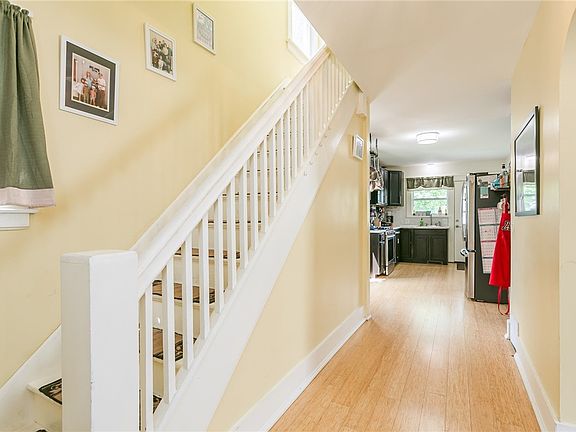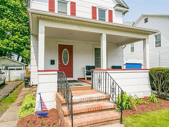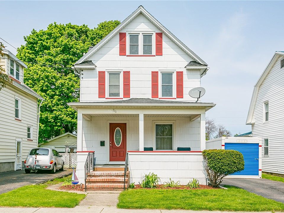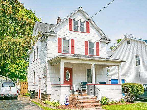 Don't miss this updated and move in ready Colonial in the village of East Rochester. Restaurants and Entertainment only a short walk away from your covered front porch. 3 great bedrooms, all with huge closets and hardwood floors. 2 updated, full Baths. Easy maintenance, laminate flooring through out first floor. Spacious eat in kitchen with exposed chimney, pot rack and space to add a breakfast bar. Plenty of counterspace, cabinets, gas stove, and a door that leads to a private, fully fenced, yard. Patio and shed. Large attic and full basement for storage. Replacement Thermal pane windows, Furnace/AC 2020, WaterHeater 2022, 200amp Electric, Greenlight Internet available. Delayed Negotiations Tue 16th at 11am.
