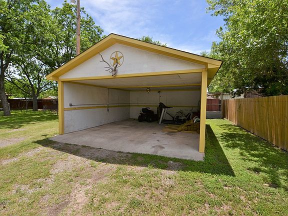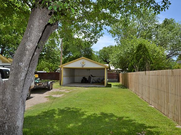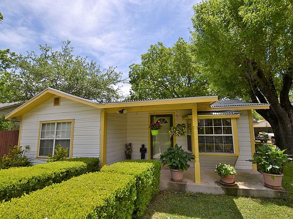 Cute and charming three bedroom one bath home on a double lot. Completely fenced. Gorgeous landscaping. Lush green St. Augustine grass. Large, mature trees with abundant shade in the backyard for bbq's and entertaining. Just behind the home is a detached building that is one half workshop and the other half finished out as a bedroom with a window unit and a full bathroom with shower. An oversized two car garage to protect your vehicles is at the corner of the property. Fully fenced for privacy and security, a perfect yard for pets and children alike. Contact listing agent, Gene Evans for a showing at 830-486-9682