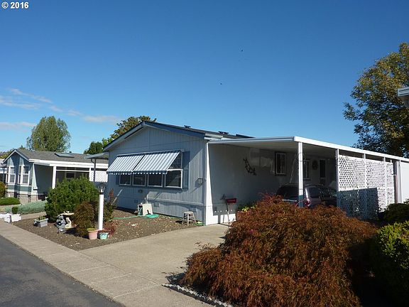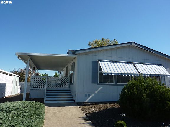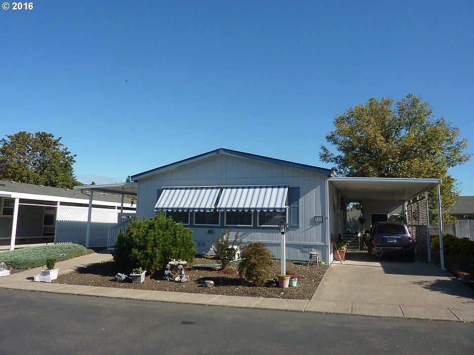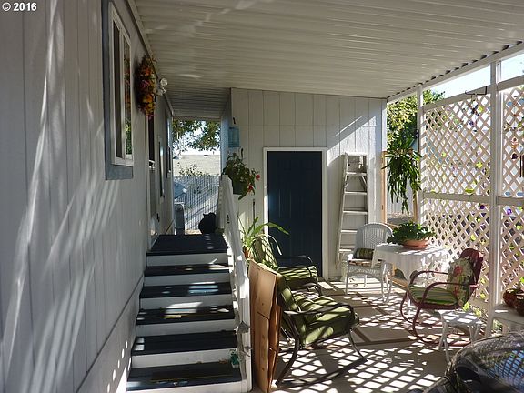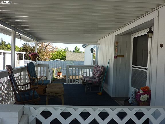 Very well-maintained 2 BD/ 2 BA built in 1996 Manufactured Home. Enjoy covered patio or deck. Front windows have retractable awning. Inside the freshly repainted house is utility room w/small desk area, kitchen w/skylight and lots of countertops. The combined living room dining room area has lots of windows for natural lighting. Master bedroom has lg. walk-in closet and shower. Roof is only 2 years old and heat pump replaced in 2015.