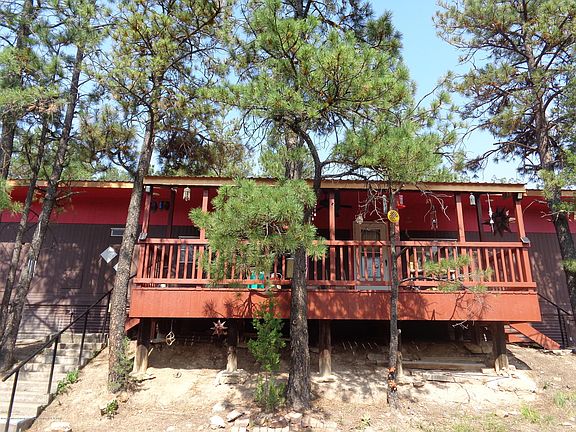 Walk into the Past in a Groovy Way! Happy well decorated with upgrades/updates that will make you spin...Great covered deck. Furnished home Living room with light furniture very comfortable. Dining area and a kitchen that has sturdy cabinets, countertop remodeled with concrete and mosaic stonesThere is a master bedroom on one side and the other side has another bedroom with built in drawers in closet. Third bedroom has a bunk bed in it. Full bathroom has stylish decor and mosaic tile on counter top. 1-1/2 bathrooms. Stackable washer & dryer. Fully furnished . 3 ceiling fans, evaporative cooler, forced air unit. Beautiful mountain top views and lots of forest landscape. Great size lot! .40 of an acre