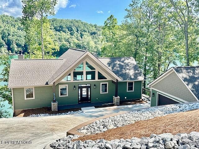 Virtually Staged New Construction home available for purchase on Norris Lake. This rare property is situated in the gated community of Clearwater Cove and boasts 114 feet of deep water lake frontage. This home features an open floor plan with 4 bedrooms, 3.5 full baths there is ample space for guests. As you step inside this home, you will be greeted by high ceilings and large windows overlooking the lake. The main level area comprises a great room, dining space, kitchen, and large kitchen island, master bedroom, half bath and laundry room. Main level Outdoor fireplace is wood burning with a propane ignitor. The downstairs features an additional master, 2 additional bedrooms and 1 bathroom. Rec-room & most bedrooms have views of the lake. The property comes with a 24' x 24' deattached two-car garage. Concrete path to the lake. This home has endless possibilities. Home should be completed in time for lake season.Taxes are just for the vacant property, they will be adjusted for the new home.