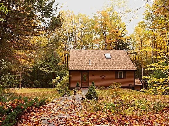 Escape the Pace of Life! Quiet country road. No neighbors to disturb you. Year-Round or Weekend Home - yet a short drive to fresh pastries, coffee and deli sandwiches at the wonderful Creamery. 23 minutes to Pittsfield, 28 minutes to Florence. All green constructed, post and beam, home is nestled on 11 mostly-treed acres with hiking trails and year-round stream on the property! Convenient to Northampton, Pittsfield, Lenox, VT. Walk out basement. Lower level bedrooms with full sized windows. Numerous upgrades include hybrid ultra efficient forced hot air heat system, energy efficient windows and skylights with lifetime transferable warranties, newer roof with 48 yr. transferable warranty, low emission convection wood stove, huge deck with new support structure and pylons, one-piece gutters, new well pump, 1000+ sq ft frontage, landscaped perennial gardens, 2 detached storage units, and the list goes on. Take the step to the Quieter Life!