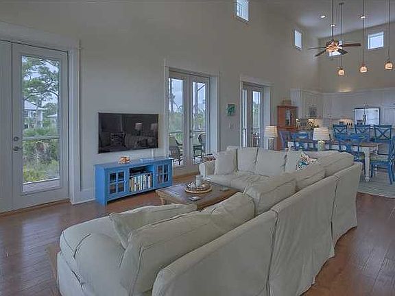 Beautiful 3 BEDROOM 3 BATH 1st Tier BEACHVIEW home in the prestigious WindMark Beach gated community. Just steps from the water with an amazing unobstructed water view. This home is sold FURNISHED & has an open floor plan that allows for easy entertaining & relaxation. The fully equipped kitchen features stainless appliances & granite countertops. An extra bunk room is ideal for guests. Roomy wrap around screened porches & decking to enjoy the views from every angle. ICF construction for energy efficiency. Property also features a private walkway to the beach, just steps to the white sandy beaches & cool water. Community amenities include 2 pools, community room, firepit, downtown shopping area, and miles of walkways and bike trails along the beach. Enjoy all that WindMark Beach has to offer from this ideal location. Offered at $595,000.