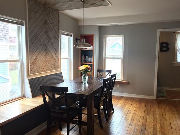 Attractive two story 4 bedroom 2 bath home set on a deep lot in the city of Ithaca is filled with modern touches and lots of character. Reclaimed wood treatments in the dining and living rooms, renovated downstairs bath and kitchen with farmhouse sink, honed granite counters, subway tile, cork floor and SS appliances. Four comfortable bedrooms upstairs with a walk-up attic and plenty of natural light. Newer windows throughout. A welcoming front porch completes this downtown gem.