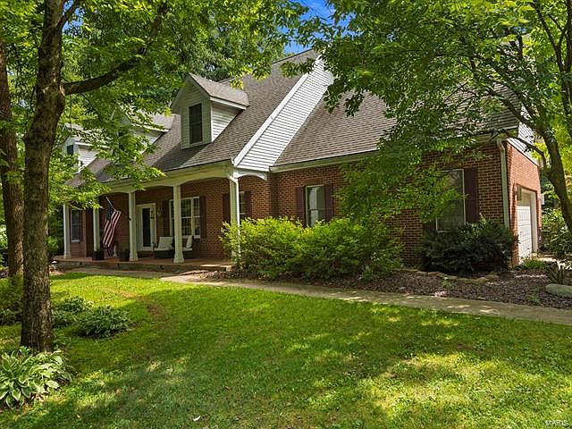 Secluded beauty in Shiloh/O'Fallon area. Premium lot on 1.1 partially wooded acres, backs to trees, frontage on small shared stocked private lake. Exterior features: Tiered composite deck, fenced, walking path in the woods, compost area, fire pit, covered front porch, stamped patio, & storage shed. Main level features main floor master with trayed ceilings, private door to backyard, & large bathroom with double vanities, jacuzzi tub, separate shower, and double walk-in closets. Large living room boasts 2-story vaulted detailed ceiling & fireplace. Kitchen has Silestone counters, work island, and bar top with casual dining area too. Entry foyer, formal dining, & main level laundry. The upper level has 3 large bedrooms and a full guest bath. Basement is finished with home theatre room, family room, 2 bonus rooms great for office, home gym, or guest area, and extra storage too. Side-entry extra deep 2-car garage. Any purchase must be contingent on sellers closing of new home.