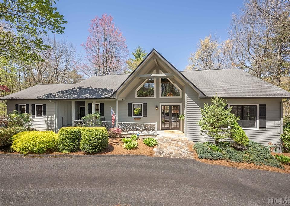 Situated in the serene gated enclave of Sheepcliff Woods, just moments from the vibrant crossroads of Cashiers, this refined residence presents a breathtaking panorama of Big Sheepcliff Mountain. Upon entering, you are welcomed by a grand great room adorned with rich wood beams and elegantly painted wood walls, creating an atmosphere of warmth and sophistication. The room's centerpiece, a majestic stone fireplace, invites relaxation and social gatherings. Extending from the living area is a vast covered porch alongside a wraparound deck, offering an idyllic setting to savor the mild summer climate unique to the Western Carolina mountains. The deck provides a seamless transition to the outdoors, ideal for tranquil evenings or grand entertaining. The heart of the home, a gourmet open kitchen, features a separate pantry, ensuring culinary pursuits are both luxurious and efficient. Adjacent to the kitchen, a formal dining room with a wet bar sets the stage for memorable dinners and festive occasions. The main level hosts the primary bedroom suite, complete with all comforts, and an additional bedroom. A convenient laundry room and a chic half bath complete the main floor's amenities. Descend to the lower level to discover a spacious family room that extends the living space, perfect for entertainment or relaxation. This level also includes a guest suite and a versatile bonus room, each thoughtfully designed for comfort and style. A half bath services this floor, and walkout access leads to a charming patio area, overlooking a gently sloped garden that invites peaceful contemplation and outdoor enjoyment. This home, now newly available on the market, promises a lifestyle of unparalleled convenience and elegance in a sought-after location. Seize the opportunity to make this exquisite mountain retreat your own.