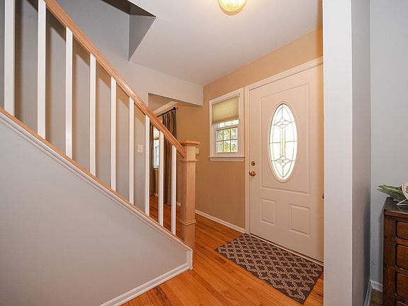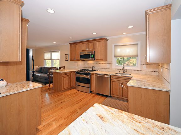 Colonial with great curb appeal situated on large corner lot.LR with sliders to trex deck overlooking beautiful property. Remodeled kitchen 2010 w/granite counters,tile back splash & GE Profile SS appliances opens to dining room and family rm. w/wood burning fireplace.Recessed lighting and crown moldings. 1st floor laundry room. Master bedroom features walk in closet and full bath. Hardwood floors throughout. Finished basement with carpeted rec. rm. Neutral colors throughout house. Quiet neighborhood in a fabulous location!