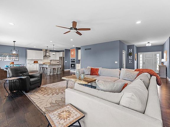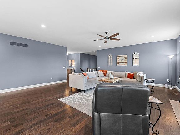 Modern amenities meet classic comfort with this stunning 4 bedroom ranch. Step inside to discover an inviting open floor plan w/ beautiful hardwood floors. The heart of the home is the gorgeous eat-in kitchen, featuring granite center island breakfast bar, SS appliances & marble backsplash-perfect for both style & functionality. The adjacent living room boasts a cozy gas FP that creates an inviting atmosphere for both relaxing & entertaining. The primary bedroom suite offers a tranquil escape with its spacious layout, complete with a luxurious bathroom boasting dual sinks, a seated shower, & large walk-in closet. 2 additional bedrooms, 2 bathrooms, & laundry room round out the main level. Expand your living space w/ the freshly painted lower level rec room, 4th bedroom & full bathroom. Oversized 3 car garage is insulated, drywalled & has versatile epoxy flooring. Fenced backyard with irrigation system. Wentzville (Liberty) Schools. This is the one you've been waiting for, see it today!