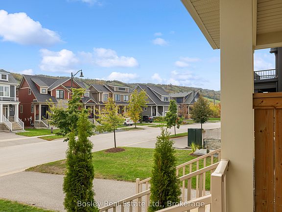 Take in the view of the picturesque mountain landscape before pulling into your home on a premium lot with direct views of the mountain. The rare 4-bedroom Mowat model features an open concept layout with an abundance of natural light pouring in through the oversized windows that reveal more mesmerizing mountain views to watch the sunset. Enjoy an entertainer's dream kitchen with a pull-up breakfast bar, pendant lighting, beautiful cabinetry that contains an abundance of storage, S/S appliances incl. fridge, stove, dishwasher, and microwave, with meticulous finishes throughout. As day turns to night, the space takes on a bright and cozy feel with pot lights throughout and the warmth of a gas fireplace. Upstairs hosts 4 bedrooms, and 2 baths with a spectacular owner's suite with 4pc ensuite. Downstairs is a fully finished basement with another full bath, & laundry room. Immerse yourself in this community that appreciates the four-season playground the area has to offer with steps to your own private clubhouse that includes an outdoor pool, hot tub, sauna, gym, and lodge with an outdoor fireplace. With a short walk to Blue Mountain Village and a quick drive to downtown Collingwood and Georgian Bay, 213 Yellow Birch is the perfect home for anyone looking for a thriving community surrounded by nature