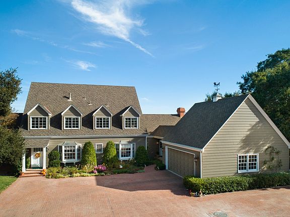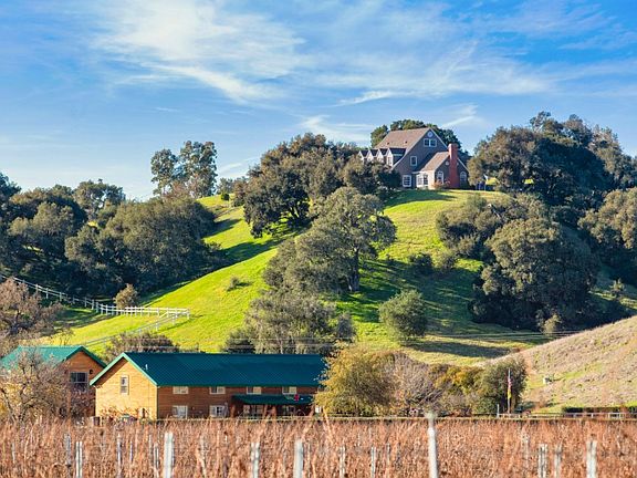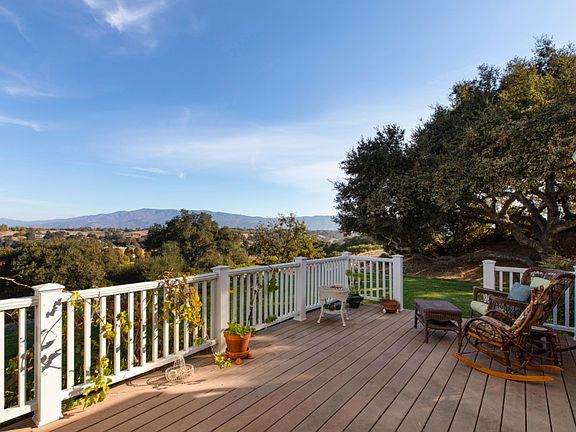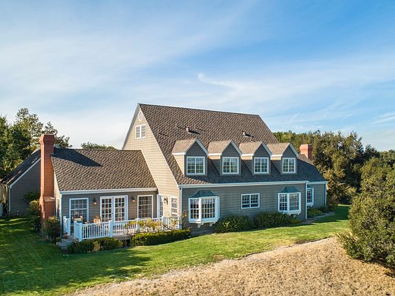 Simplicity and serenity define this custom-built country home of over 4,400 square feet on ten secluded, ridge-top acres overlooking the rich landscape of the Santa Ynez Valley. Complete with such streamlined elements as a row of congruent dormers, twin bay windows, and verdant shrubs, the farmhouse-meets-Cape-Cod facade has a neat and classic curb appeal. The interiors feature a charmingly rustic aesthetic that may be updated and customized to a new owner's liking. The 5BD/3.5BA home is partitioned, yet fluid, with a highly functional floor plan offering formal living and dining rooms, a cozy family room and den, a first-floor guest suite, two upstairs bedrooms and a master suite, plus a sequestered loft area with one additional bedroom and space for an office or recreation. Nearly everyroom showcases unobstructed panoramic vistas of endless natural splendor, thanks to entirely underground utilities, and an east-facing deck provides a wonderful vantage point for watching sunsets over the valley.A barn, gazebo, horse stables, a private well, a septic system, oak groves and sloping greenery comprise the idyllic, self-contained grounds of the property, which is exceptionally private and convenient to in-town amenities.Mountain ranges and SYV wine country's bucolic terrain form a perfect backdrop for this beautiful estate, which expertly captures the spirit of countryside leisure.