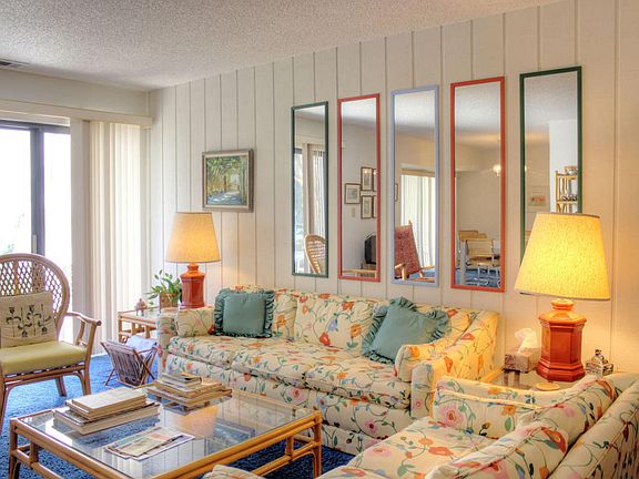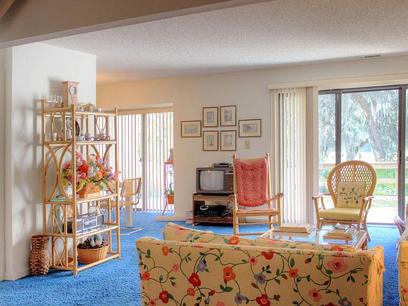Florida island town home with patio featuring scenic views of Red Maple Lake and Ocean Links golf course. Downstairs living area is open and bright and includes an equipped kitchen, dining room and living room. There is also a powder bath and a laundry area that opens to the service courtyard. 3 bedrooms with 3 baths are upstairs and the master suite has a balcony. It is only a short walk to beach and the Amelia Island Club. Furnished with exceptions, personal items do not convey. Located within the gates of Amelia Island Plantation. Access to shopping, dining and Spa.