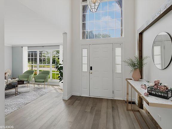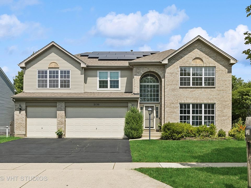 Discover the perfect blend of modern comfort and eco-conscious living in this expansive 4,700 sq. ft. smart home. Solar panels and integrated smart technology make it easy to control the thermostat, security system, and lighting remotely, helping you reduce energy costs and your carbon footprint. Positioned across from a serene grasslands reserve, this home welcomes you with a grand two-story foyer and an open floor plan ideal for both relaxing and entertaining. The main level features a formal living and dining area leading to a family room with floor-to-ceiling windows and a cozy fireplace. Step through sliding glass doors onto a composite deck, built to accommodate an above-ground pool. The kitchen is an entertainer's dream, with pendant and recessed lighting, generous cabinet space, soft-close doors and drawers, granite countertops, and high-end appliances, including a freezer and wine/beverage cooler. Luxury vinyl plank flooring flows throughout, and a main-level bedroom with an adjacent full bath is perfect for guests or a private home office. Upstairs, you'll find the expansive master suite, secluded on one side of the home and featuring dual walk-in closets and a luxurious master bath with separate vanities, tub, and shower. Three additional spacious bedrooms and a full hall bath complete the second floor. The fully finished 1,570 sq. ft. basement is the ultimate entertainment zone, featuring a billiard-themed "man cave" with a regulation-size pool table, custom lighting, a wet bar with a draft beer dispenser, and ample room for seating. There's even a dark room, perfect for a home theater setup, and an extra room that could serve as a 6th bedroom. With solar energy, including panels valued at over $50,000, to help lower your utility bills and smart technology for convenience, this home is a wise and strategic investment. Just think about the savings in energy costs over the life of this home, especially with the expected increase in electric bills coming next year! Located near the Randall Road shopping corridor, parks, and minutes to I-90, this property combines exceptional value with comfort and convenience. Don't miss the opportunity to make this energy-efficient, smart home your own!