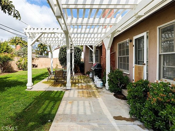 Delightful traditional 1950’s Americana home with upgrades and just a touch of gingerbread charm! The cheerful porch welcomes you with an adorable window box under the vintage style shutters! Warm refinished original hardwood floors and paneled doors throughout most of the house along with many upgrades! The large living room features a brick fireplace, a dining area with a vintage pastoral mural, and a multitude of windows along with a French door for a view of the delightful backyard. The remodeled and spacious kitchen has granite counters with plentiful counter space, dishwasher, stainless steel sink, and vinyl tile flooring. The 3 bedrooms are roomy and have paneled door closets for extra charm. There is a vintage chocolate & mint tiled bathroom with large tub and separate shower, Plus another half bath with space for potentially adding a shower! There is a separate laundry room off the kitchen complete with a pantry space, sink and door to the back. Upgrades include central air, copper and PEX plumbing, newer exterior and interior paint, newer wi-fi enabled garage door opener, built-in cabinets for storage, and a newer driveway. Absolutely charming backyard with a beautiful, newer wood trellis covering the concrete patio, Large grassy area for play is fully fenced with low maintenance block and vinyl fencing. The front and backyards have beautiful landscaping full of flowering plants and small trees including camellias, roses, lilies of the Nile, and many more, plus a large jacaranda in front for amazing purple blooms! Located in the quaint and cozy, mid-century neighborhood of Riverview, with golfing and parks nearby. Just minutes away are the award-winning schools - Santiago K-8 with fulltime gate and drama programs, OC School of the Arts OCSA, Mendez Fundamental Intermediate, and Santa Ana College, and with Chapman University just a short drive. For medical and legal professionals there is CHOC & St. Joseph’s Hospitals and Downtown Santa Ana, also known for all its nightlife and restaurants! Easy access to the 22, 5, and 57 freeways, with great shopping and food at both the Outlets of Orange and Main Place Mall.