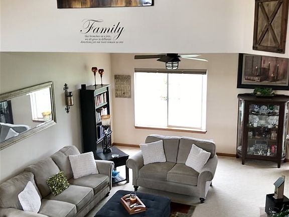 Welcome Home! Easy living in Belvidere. Convenient to I-90 and Business 20. This gorgeous condo has everything you need. Townhouse style with charm galore & 2 Car Garage. Grand entry with vaulted ceilings, spacious and open living room with gas fireplace. Lovely kitchen with granite counter tops and an adorable office nook with matching granite top as well. Main floor boasts a half bath off kitchen and a deck view overlooking beautiful green space. Imagine yourself grilling, entertaining, relaxing and bird watching! Second floor main bathroom as well as Master bath and walk in closet. Basement-a great place to hang out w/ rec room that has been tastefully decorated. Cozy neutral carpeting and colors invite you to enjoy & relax. Add. upgrades include: New Water softener, beautiful room darkening shades in master bedroom and basement that can be adjusted from top or bottom. Matching custom shade for patio doors, Electric shade with remote in vaulted entryway area. A Must See!!