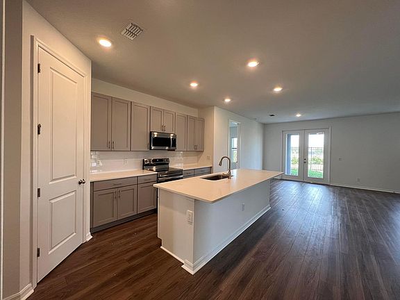 Welcome to The Glen at West Haven! Gorgeous brand new home located in the highly desirable Champions Gate area. This beautiful one story home with no rear neighbors has a sunny bright, open kitchen with plenty of upgrades such as beautiful 42 inch gray cabinets, all stainless steel appliances including range, dishwasher, and microwave. Enormous island with Quartz counter-top perfect for gatherings that is open to the great room and dining area. Main living space features wood look ceramic plank tile flooring and bedrooms with upgraded stain resistant carpet for comfort. Enjoy the amenities with a swim in the community pool, fitness center, tennis courts, playground and beach volleyball court. This home is conveniently located to shopping, grocery stores, Posner Park, Champions Gate Village and Walt Disney World. ( WASHER, DRYER AND REFRIGERATOR INCLUDED).