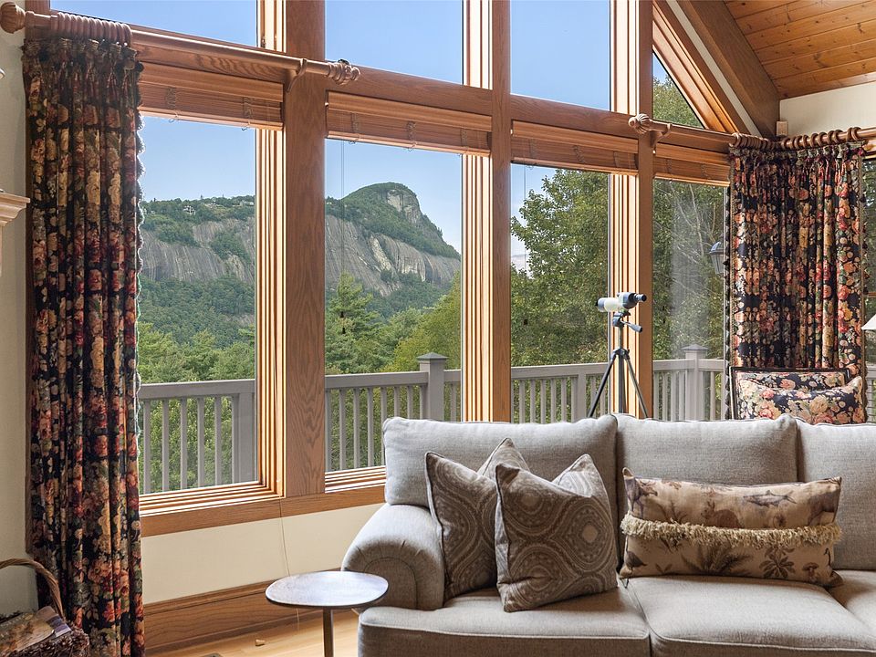 This is the BIG VIEW! Prepare to be captivated by sweeping, unobstructed views of iconic Whiteside Mountain from this stunning Highlands Falls Falcon Ridge residence, a home so remarkable it has been featured twice in architecture magazines. Designed with generous proportions and effortless flow, the home offers main-level living with the primary suite conveniently located on the entry level. Architectural details abound, highlighted by custom wormy chestnut and oak features throughout, including an impressive 3” solid wormy chestnut entry door. The primary suite commands breathtaking mountain views and sunrises and boasts a lavish Italian marble bath with soaking tub, oversized shower, dual lighted mirrors, hidden lighted vanity, Kohler fixtures, custom walk-in closets, and a private wet bar with sink and mini-fridge. The open-concept living, dining, and kitchen spaces flow seamlessly onto a screened porch with a fully outfitted grilling station featuring a Blaze grill—an entertainer’s dream with Whiteside Mountain as the backdrop. The main level also conveniently includes a guest bedroom, full bath, office/den with custom glass paned wormy chestnut and oak door, and a full laundry room with sink. The lower level provides for guest privacy with a second living area with fireplace, private deck, two spacious en-suite bedrooms, powder room, bonus/flex room with gym/playroom potential, and a secondary laundry area. Recent upgrades are extensive, including a remodeled kitchen, refinished hardwood floors, 27 new windows, new roof, gutters with guards, encapsulated crawlspace, repaved driveway with focal pavers, updated HVAC systems, new water heaters with recirculation pump, blown-in attic insulation, new gas logs in main level fireplace, and view clearing to fully showcase dramatic views of Whiteside Mountain, Wildcat Ridge, and Cullasaja Club beyond. A drainage system beneath the upper deck ensures protection for the lower-level outdoor living area. Peace of mind comes with a 500-gallon fresh water reserve tank and a whole-house generator. A two-car garage with workshop, along with a welcoming exterior accented by a serene water feature, completes this mountain sanctuary. This Highlands Falls home is more than a residence—it is a retreat of timeless architecture, meticulous updates, and awe-inspiring views. Membership to Highlands Falls CC is not mandatory but the amenities are tremendous and the club is vibrant. See Attached Matterport for tour.