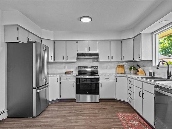 Meticulously Maintained, Updated, Low-Stress and Dialed-in Townhome Offering! Take a deep breath and relax as all exterior maintenance is accounted for, including landscaping, irrigation water, snow removal, and even the exterior of your home! This home delivers value, a proven and practical floor plan, and quality updates throughout such as all new windows as of 2 years ago! Step inside to a welcoming, open-concept floor plan with new flooring and paint. The kitchen provides plenty of storage in recently freshened up cabinets, tons of counter space, and an ergonomic layout, making your life easy. Finished with stainless appliances, new and on-trend backsplash tile, and a large pantry, this kitchen is a dream! The en-suite has new carpet and paint, comes with 2 large closets, and has extra room for a reading nook, yoga mat, or the extra furniture you're bringing with you. The en-suite bathroom has been remodeled with a gorgeous tiled walk-in shower and beautiful quartz countertops, adding to the light, fresh feeling throughout the home. The extra deep garage would accommodate most vehicles, and allows additional room for storage. Enjoy privacy and pleasant views from the back patio, which borders open space and is the perfect environment for sipping your favorite beverage. With Attention to Detail, Pride of Ownership Shining Through, and That Elusive, Low Stress Life You're Looking For, is This Home Even a Decision? Experience it For Yourself Today!