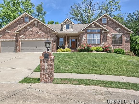 This 4 bed, 3 bath ranch is nestled on a wooded lot in Wendell Creek Estates! Great room finished with hand-scraped wood floors, cathedral ceiling, floor to ceiling stone fireplace, and windows galore revealing the private wooded backyard. Large eat-in kitchen features granite countertops, custom cabinetry, stainless appliances. Master bathroom includes separate vanities, large ceramic shower, and corner whirlpool tub. Walk-out lower level has a full bed, bath, large family room and/or recreational area as well as a full wet bar! This home is a must see! Call today for your personal tour.Christina Schmitz RE/MAX Alliance (618) 797-8717. Buyer to verify MLS info.