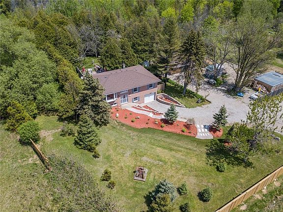 One of a kind property, catch a fish in Bronte creek right on your over 4 acre lush land before your morning coffee! This location is the perfect balance of a nature lover's haven meets the convenience of amenities/commuting at your fingertips. This 3+1 bed, 2 full bath raised ranch is completely move-in ready. Main lvl has open concept kitchen (2016) w granite counters, stone backsplash, SS appliances & hardwood floors. Off the dining/living rm combo is a lrg deck (2017) w hot tub (2019) & one of the best views on the lot w mature trees and cedars providing complete privacy. Upstairs are 3 good sized bedrooms, including backyard facing master w ensuite privilege and rustic barn board doors into master closet. In the bsmt walk into lrg bright family rm w cozy wood stove, 3 pc bath, updated laundry rm (2020), & 4th rm that could easily be a bedroom, office, or hobby rm, w inside grg entry. Outside you will find a 24x24 ft heated shop w 200 amp service & limitless possibilities for the hobbyist or work shop/man cave! Lrg new lean-to shed is the perfect area to store a ride on mower, quads & any other toys your heart desires. Also on the property are 2 garden sheds, 2 fire pits, multiple nature look outs, & a picturesque recently rebuilt bridge over Bronte creek. Roof 2018, A/C 2019, funace 2015, front walkway/fence 2020, Septic pumped 2018. **AMAZING TAX CREDIT bringing taxes to only $3,062 per year!** Call to arrange a virtual showing. Don't be TOO LATE*! *REG TM. RSA.